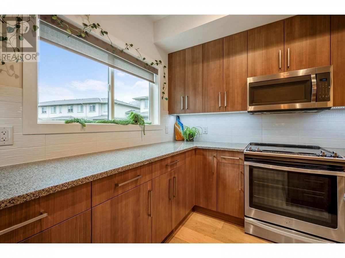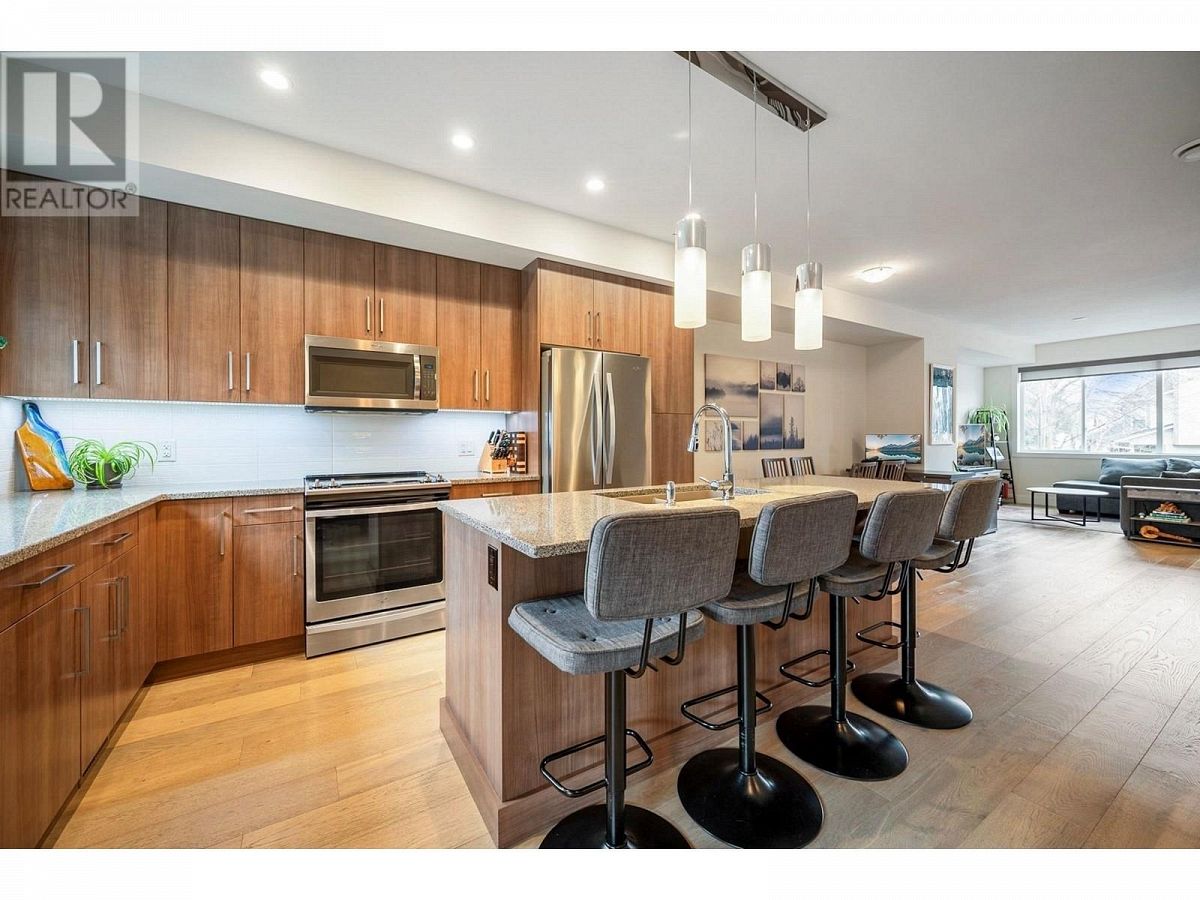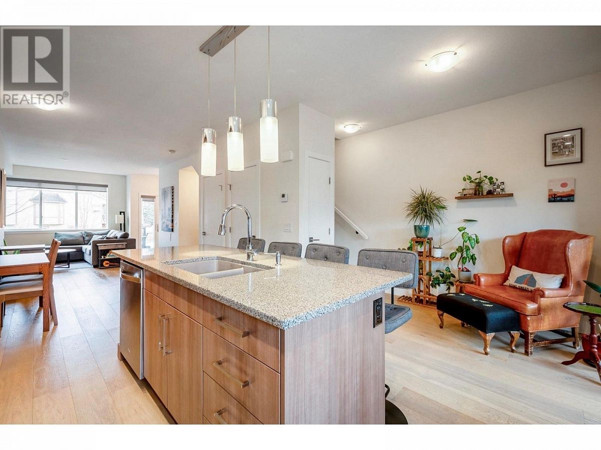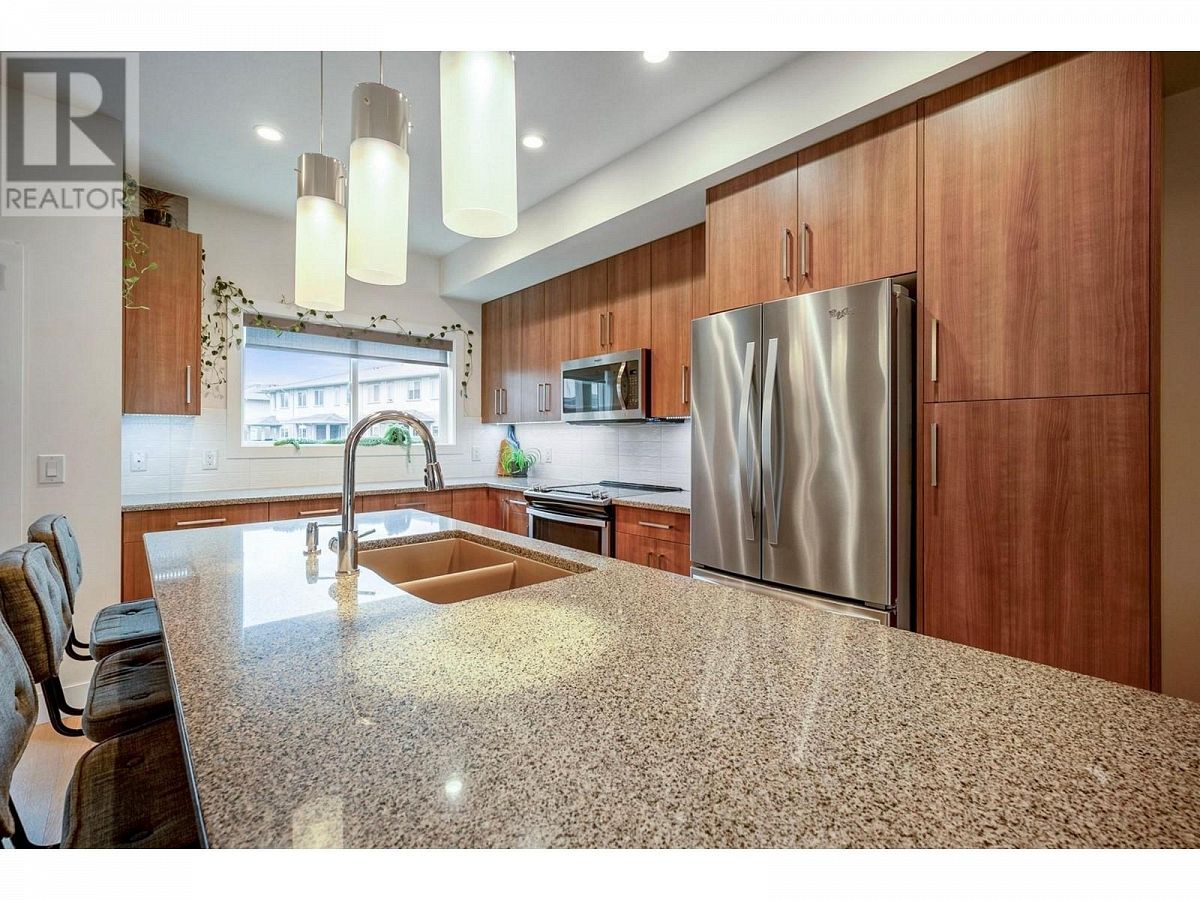 This listing has been sold.""Step into the epitome of modern living with this like-new, 3 bed, 2.5 bath townhome in the sought-after Groves community. Boasting a double tandem garage, this residence combines luxury and functionality seamlessly. The kitchen is a culinary haven with granite countertops, and stainless steel appliances complemented by soft-close cabinetry. (Gas hookup in place). This space effortlessly extends to two outdoor living areas, perfect for al fresco dining or relaxation. Revel in the ambiance of wide plank, engineered hardwood flooring, accentuating the open layout, while soaring ceilings and large windows flood the interiors with natural sunlight. Find sanctuary in the primary bedroom with a three-piece custom ensuite, walk-in closet, and a peace-inducing main bathroom. Convenience meets style with an in-suite laundry, ensuring efficiency. Two deck spaces, one covered, beckon you to unwind and soak in the surroundings. Surprisingly low strata fees of $220 per month enhance the appeal of this beautiful living space. Enjoy the freedom of two pets, no age restrictions, and the option for rentals, making this an ideal investment. The prime location places you within reach of amenities like flat biking trails, schools, hiking trails, grocery stores, and restaurants. Downtown Kelowna and UBCO are mere minutes away, completing the package for a lifestyle that balances convenience, luxury, and accessibility. Welcome to your new home in the heart of it all!"" (id:6770)